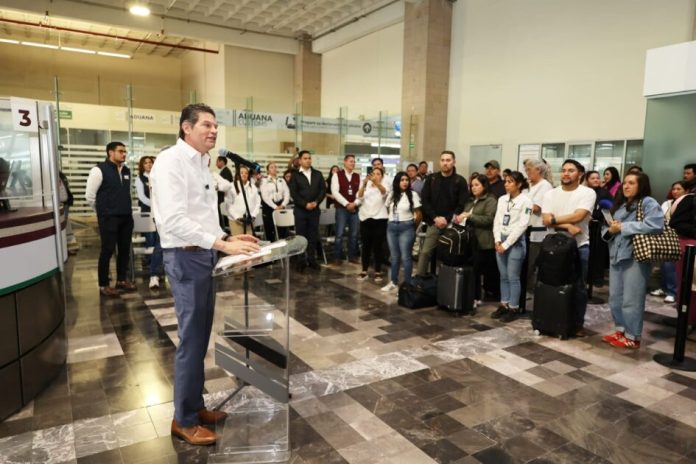 Álvaro Obregón, Michoacán; 18 de marzo de 2026.- En el arranque del programa “Bienvenido Paisano”, el presidente municipal, Alfonso Martínez Alcázar, recibió en el Aeropuerto Internacional de Morelia a las y los pasajeros que arribaron de Dallas, Texas, y aprovecharán estas vacaciones de Semana Santa para disfrutar de toda la oferta de actividades que tiene la capital.