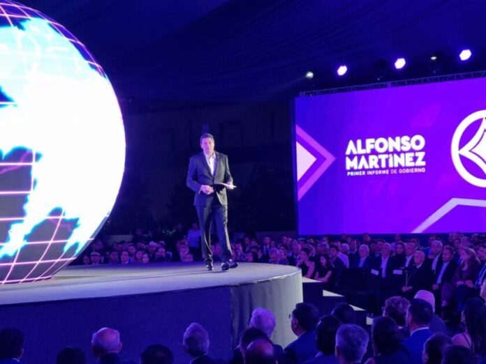 Cabe resaltar que durante la presentación del Informe, Alfonso Martínez se apoyó de inteligencia artificial para la proyección de imágenes en 4 pantallas gigantes y una esfera central.