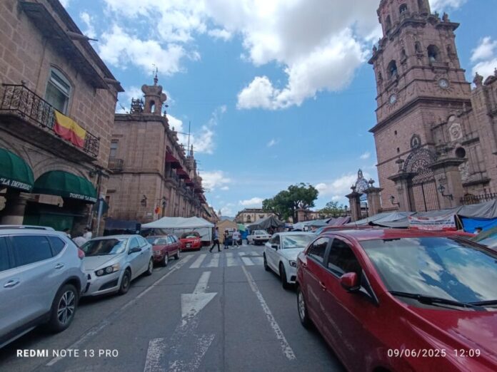 Morelia, Michoacán, 10 de junio de 2025.- La Coordinadora Nacional de Trabajadores de la Educación (CNTE), en su ala Poder de Base, anunció que este miércoles intentará extender el plantón que mantiene frente a Palacio de Gobierno, sobre la avenida Madero Oriente, rumbo a la fuente de Las Tarascas.
