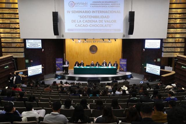 Al concluir la primer jornada del IV seminario internacional “Sostenibilidad de la Cadena de Valor Cacao-Chocolate”, organizado por la Comisión de Desarrollo y Conservación Rural, Agrícola y Autosuficiencia Alimentaria, que preside la diputada María de Jesús Aguirre Maldonado (PRI), expertos nacionales e internacionales señalaron que la producción del cacao es esencial para la economía del mundo, se pronunciaron por promover la capacitación para productores y destacaron la importancia de las certificaciones.