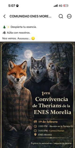 Morelia, Michoacán, a 17 de febrero de 2026.- En redes sociales comenzó a circular una serie de convocatorias para reuniones de jóvenes identificados como “Therians” en distintos puntos de Michoacán, principalmente en Morelia, Uruapan, Lázaro Cárdenas y Pátzcuaro.