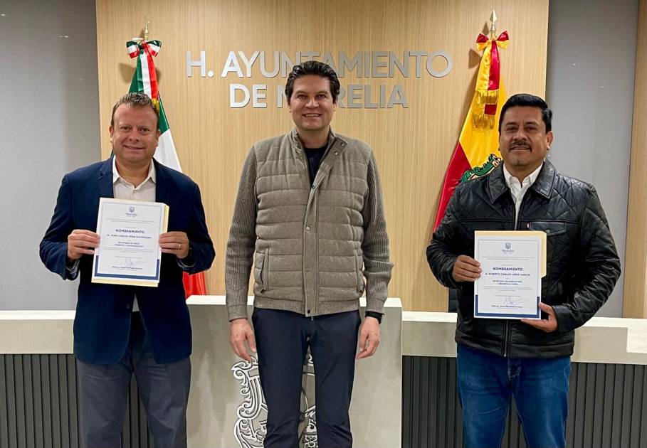 Morelia, Michoacán; 7 de enero de 2025.- Con un llamado a mantener una política de puertas abiertas y cercanía con las y los morelianos, el Presidente Municipal, Alfonso Martínez Alcázar, designó a Roberto Carlos López García como nuevo Secretario de Desarrollo Rural y a Juan Carlos Vega Solórzano, como Secretario de Medio Ambiente y Sustentabilidad.
