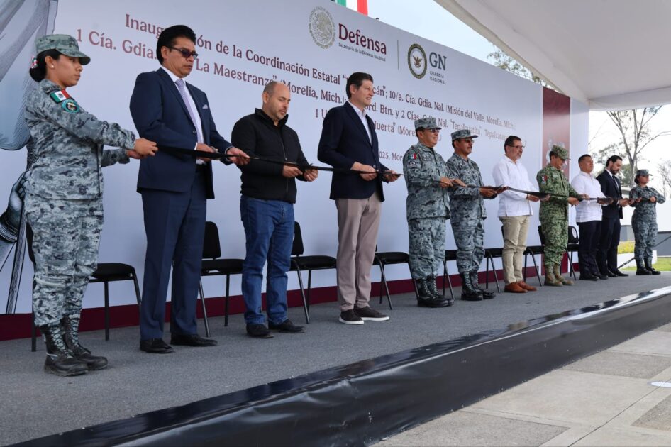 Morelia, Michoacán, 18 de septiembre de 2025.- Con el firme compromiso por fortalecer la seguridad en el estado, se llevó a cabo la inauguración del nuevo Cuartel de la Coordinación Estatal de la Guardia Nacional en Michoacán, un evento que marca la consolidación de la estrategia nacional de seguridad pública y en cuyo marco, el coordinador Estatal de la Guardia Nacional en Michoacán, Roberto Eduardo Molina García, destacó el apoyo del Gobierno del Alcalde, Alfonso Martínez Alcázar, en el mantenimiento de las vialidades que conectan a esta institución.