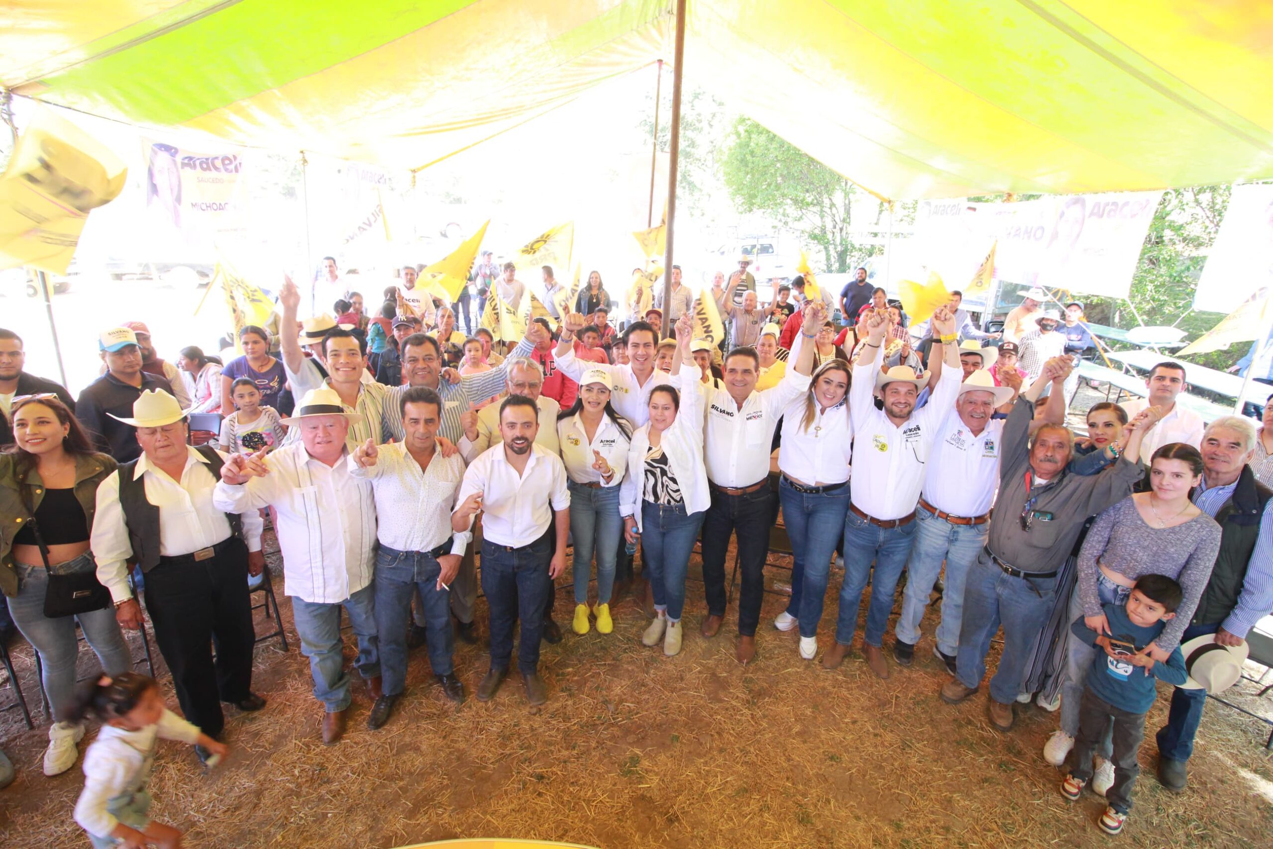 Tlalpujahua de Rayón, Michoacán 6 de abril del 2024.-Un compromiso abierto y franco con las y los productores michoacanos, generando equilibrios, relaciones justas, y condiciones de igualdad competitiva, fue el asumido en Tlalpujahua por la candidata de la Coalición Fuerza y Corazón por México al Senado de la República, Araceli Saucedo Reyes.