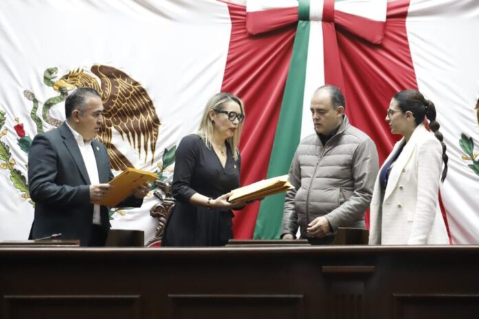 *Morelia, Michoacán, 11 de julio de 2025.-* Este viernes, la rectora de la Universidad Michoacana de San Nicolás de Hidalgo (UMSNH), Yarabi Ávila González, entregó al Congreso del Estado los exámenes que se aplicarán a las personas que aspiran a ocupar los cargos de auditores especiales de la Auditoría Superior de Michoacán (ASM).