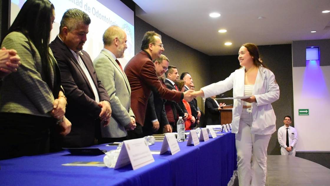 Con la representación de la rectora Yarabí Ávila González, el funcionario felicitó a la comunidad y comentó que desde el ámbito académico, la Facultad de Odontología ha crecido, al referir que se incrementó el número de profesoras y profesores con el reconocimiento de Perfil Deseable dado por la Secretaría de Educación Pública (SEP), además este año se cuadruplicó el número de académicos y académicas de tiempo completo que recibirán un estímulo por su desempeño, “esto es algo que nunca se había dado en la facultad”.