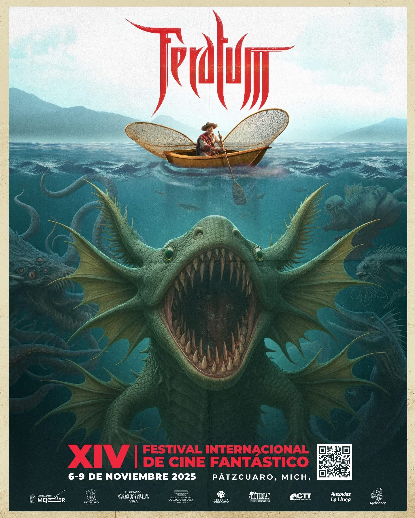 El FERATUM Film Fest reveló con orgullo la imagen oficial de su edición 2025, que se llevará a cabo del 6 al 9 de noviembre en Pátzcuaro, Michoacán. Este año, la temática girará en torno a los monstruos marinos, figuras que han marcado el imaginario del cine fantástico y de terror a través de producciones icónicas.