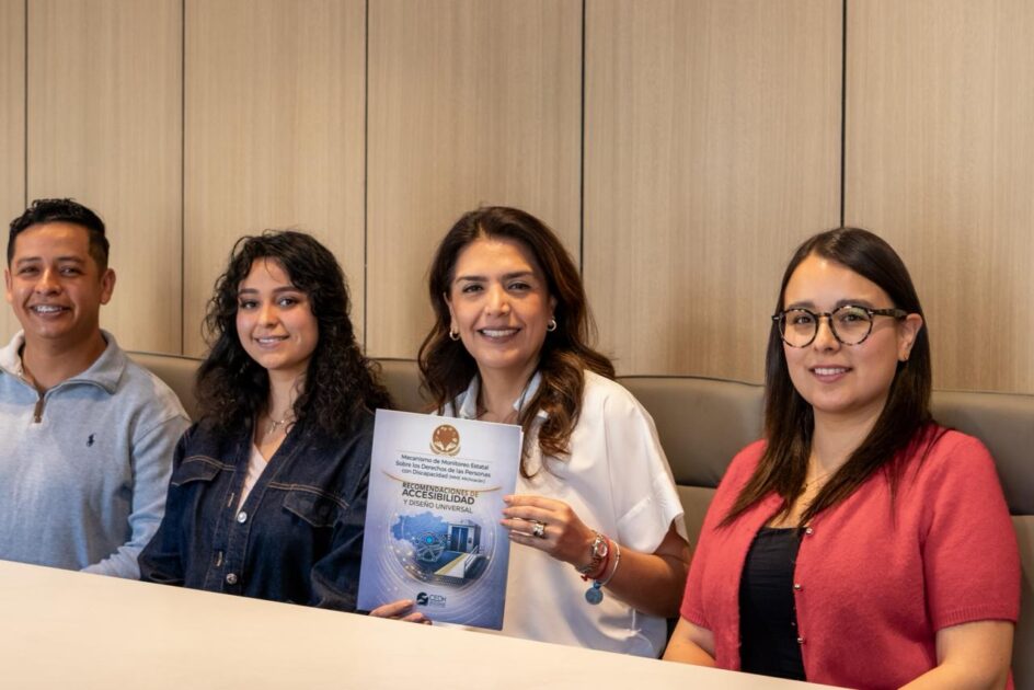 Morelia, Michoacán; 06 de marzo de 2026.- Con el objetivo de seguir consolidando espacios públicos incluyentes, la Síndica Municipal, Susan Melissa Vásquez Pérez, sostuvo una reunión con integrantes del Mecanismo Estatal de Monitoreo de Personas con Discapacidad, quienes entregaron recomendaciones para mejorar las condiciones de accesibilidad y diseño universal del Centro Administrativo de Morelia (CAM).