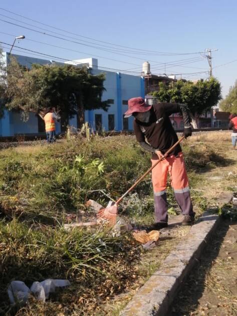 En la Colonia Industrial, brigadistas de la Dirección de Residuos Sólidos realizaron labores de limpieza, con la poda de maleza y el retiro de basura en las márgenes del río Grande y sobre la avenida División del Norte, en el tramo que va de la calle Selenio a la avenida Morelos Norte.