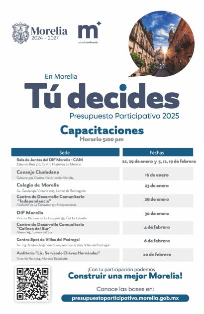 Estas capacitaciones tienen como objetivo fomentar la participación activa de las y los morelianos en la asignación y ejecución del presupuesto municipal para diversas obras de beneficio para la ciudadanía.