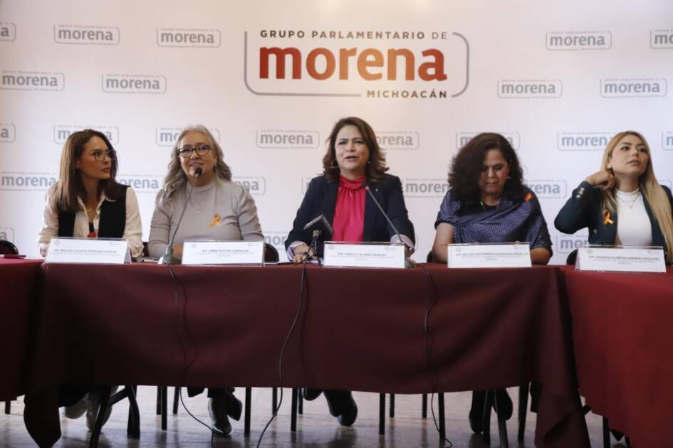 En rueda de prensa, la diputada Fabiola Alanís Sámano, coordinadora, las diputadas Emma Rivera Camacho, Melba Albavera Padilla, Nalleli Pedraza Huerta, Sandra Garibay Esquivel y el diputado Salvador Mendoza Torres, informaron que seguirán motivando a las y los michoacanos a que se informen, revisen los perfiles de los 522 aspirantes validados por el Instituto Electoral de Michoacán (IEM), y tomar la mejor decisión en las urnas para conformar el primer Poder Judicial Electo por el pueblo.