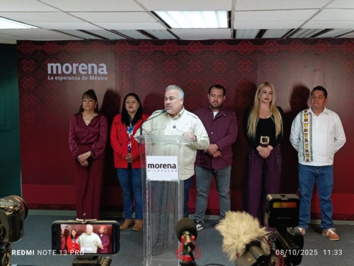 Morelia, Michoacán, a 8 de octubre de 2025.- El dirigente estatal de Morena en Michoacán, Jesús Mora, aseguró que el proceso interno para definir a la persona que coordinará los Comités de Defensa de la Cuarta Transformación en el estado seguirá los tiempos establecidos por el Comité Ejecutivo Nacional, y no se adelantará por la realización del Mundial de Fútbol de 2026.