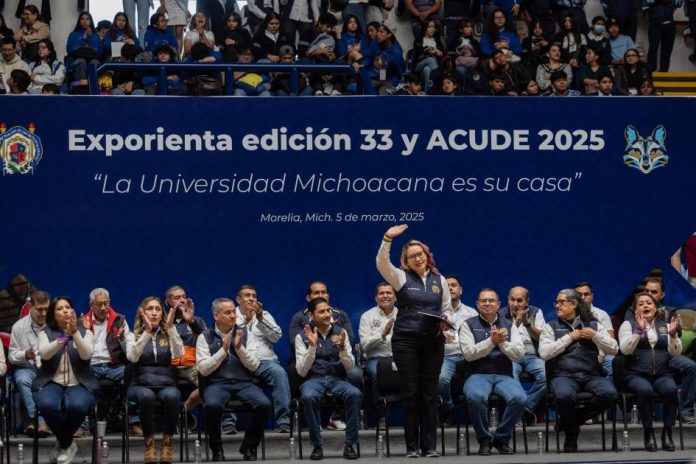 Comentó que hoy la Universidad Michoacana conjuga dos eventos importantes, uno de ellos es ExpOrienta, en donde las y los jóvenes de preparatoria y de secundaria pueden conocer la oferta educativa de la UMSNH, para poder decidir su futuro profesional. “Hay muchas carreras que la Universidad ofrece y este es un momento adecuado para quienes tienen la duda todavía de qué les gustaría estudiar, y el día de hoy pueden aclarar sus dudas”.