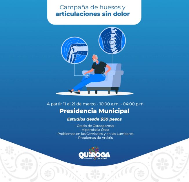 Quiroga, Michoacán, a 12 de marzo 2025 – El Gobierno de Quiroga, a través del Sistema para el Desarrollo Integral de la Familia (DIF) Municipal, lleva a cabo la campaña “Huesos y Articulaciones Sin Dolor”, con el objetivo de brindar atención accesible a los ciudadanos que padecen problemas en huesos, articulaciones y dolores musculares.