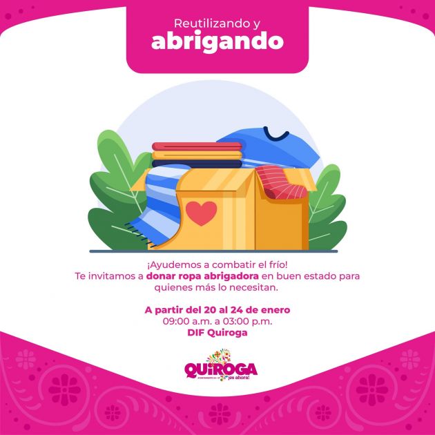 Quiroga, Michoacán, a 21 de enero 2025. – Para contribuir significativamente al bienestar de las personas en situación vulnerable, el Gobierno de Quiroga, a través de la Instancia de la Mujer junto con el Sistema para el Desarrollo Integral de la Familia (DIF) Municipal, invitan a la ciudadanía a sumarse a la campaña “Reutilizando y Abrigando”.