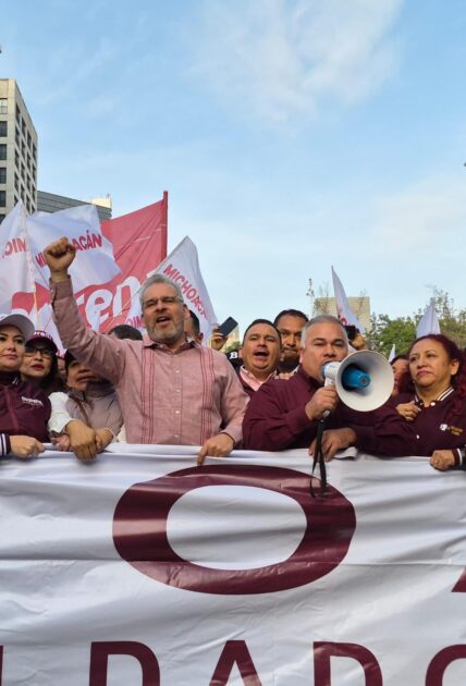 El secretario de Finanzas de Morena en Michoacán y representante ante el IEM y el INE, Rigoberto Márquez Verduzco, acompañó al gobernador Alfredo Ramírez Bedolla, así como del dirigente estatal de Morena, Jesús Mora González, encabezando a los liderazgos y contingentes del estado, refleja el compromiso sólido y la cohesión del movimiento en Michoacán.