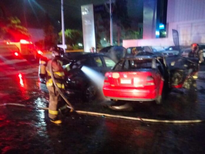 El accidente que se registró esta madrugada, provocó que la unidad se incendiara y las llamas alcanzaran 2 unidades nuevas y dos más se impactaran entre sí.