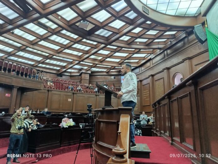Morelia, Michoacán, a 9 de julio de 2025.- Durante su participación en tribuna del Congreso del Estado, el diputado Hugo Rangel Vargas, del Partido del Trabajo (PT), propuso que el deporte sea considerado de forma prioritaria en el debate y planeación de cada ejercicio fiscal en Michoacán, al reconocerlo como una herramienta efectiva para la formación personal, la salud pública y la transformación del entorno social.