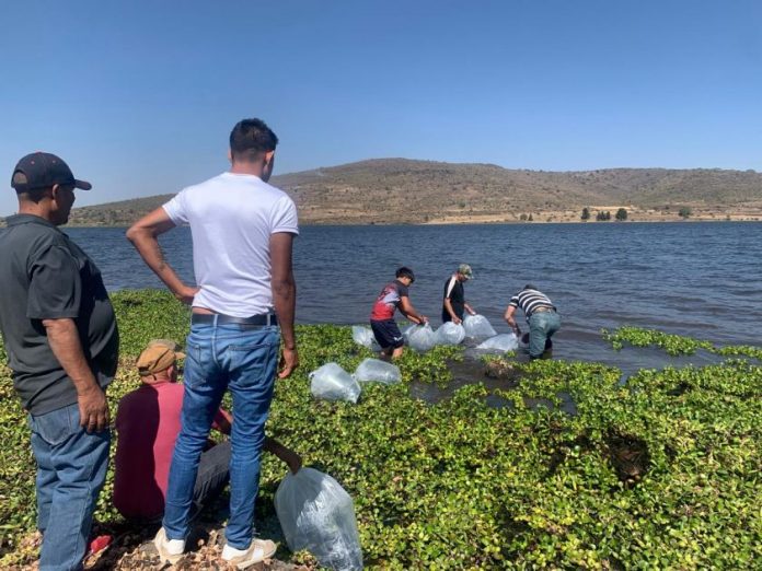 Integrantes de la brigada se trasladaron al centro de producción de la Comisión de Pesca del Estado de Michoacán (COMPESCA), ubicado en la presa Infiernillo, donde recogieron 40 mil crías de mojarra para su distribución en cuatro localidades rurales.