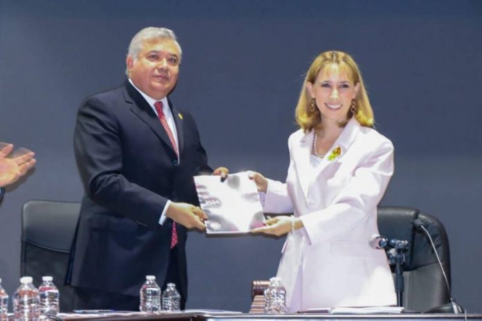 Morelia, Michoacán, a 25 de febrero de 2025.- El Presidente de la Mesa Directiva del Congreso del Estado, Juan Antonio Magaña de la Mora recibió de manos de la Presidenta del Tribunal en Materia Anticorrupción y Administrativa, Lizett Puebla Solórzano, el Informe de Labores 2024, del que dijo, estima, muestra resultados exitosos.