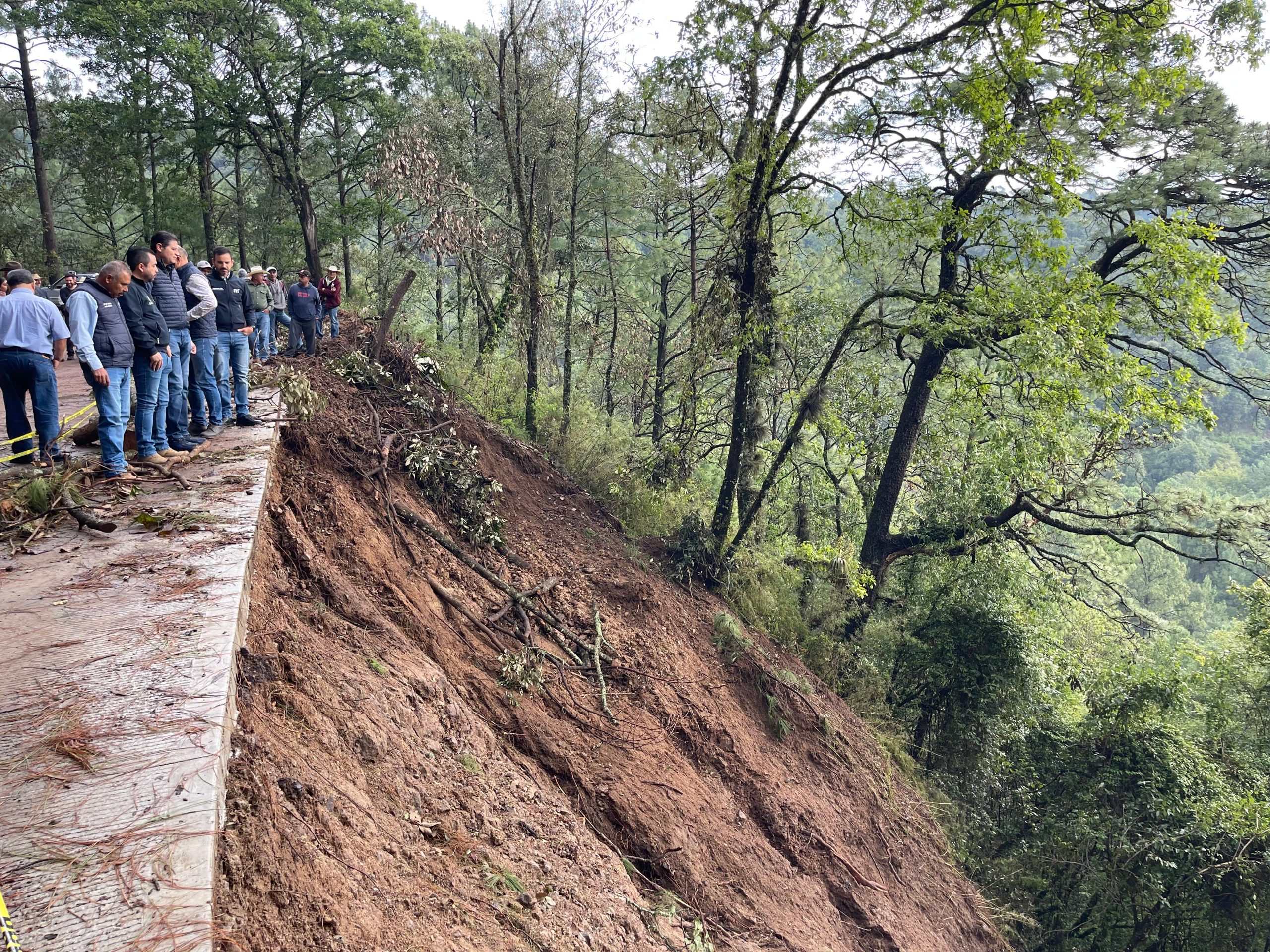 Como se informó previamente, las lluvias que se han registrado en los últimos días reblandecieron el terreno y se registró la tarde noche del lunes el desgajamiento de una fracción de terreno que invadió la carpeta asfáltica, poniendo en riesgo el paso de vehículos pesados y por ende la integridad física de las personas.